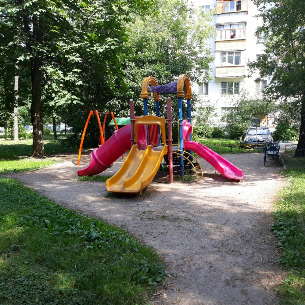 Аккуратная детская площадка, находится в тени деревьев, всегда чистая.