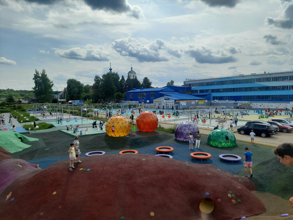 Прекрасное место для детишек, а также их родителей. Переживает не лучшие времена, горело летом 2023 года,но не сдается и пытается развиваться. Это не просто огромная игровая площадка при фабрике спортивных снарядов,это и вернисажи на крышах, и научная информация, и история развития жизни на Земле, и про эволюцию, и про космос и Солнечную систему. С крыш открываются прекрасные виды, картины увлекают. Тут можно почерпнуть для себя массу полезной информации. Вход на крыши и площадку бесплатный, есть туалеты, приличная парковка, магазин, мини-буфет (вода-мороженое),кросс букинг. В летнее время досуг на два-три часа обеспечен.