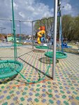 Большая, красивая детская площадка, но и взрослым там тоже интересно. Можно покататься на качелях или позаниматься на тренажёрах, можно сыграть в шахматы или прогуляться по небольшому уютному скверу, который продолжает эту площадку.