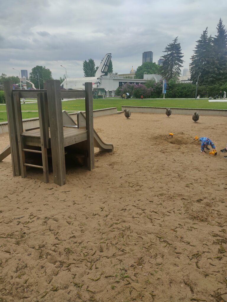 Большая песочница, но кроме горки и трёх улиток ничего больше нету