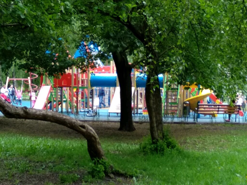 Просторная игровая площадка. Много лавочек и беседка, есть где посидеть родителям. А про деток и говорить не стоит-и спустя три часа уходить не хотят. Только туалета нет🤷‍♀️