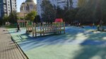 Прекрасная площадка большая, просторная ,есть горки для самых маленьких, вид на храм.