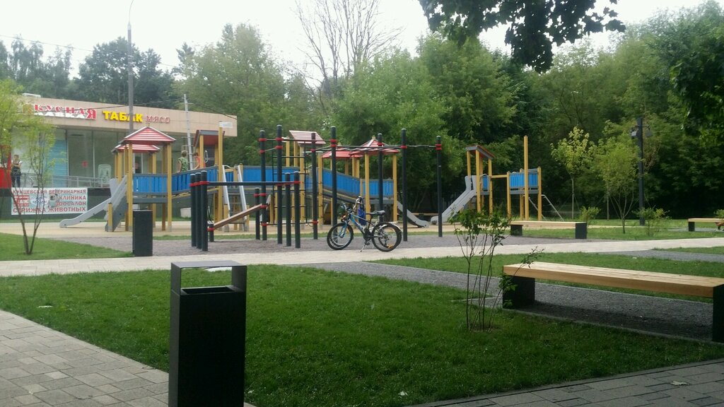 Детская площадка построенная не у подъезда жилого дома, а у торгового комплекса. Вместо ватаги детей с родителями, как было на настоящих площадках, постоянно сидят "оккупанты ". Две звезды поставил за наличие сооружений для детей.