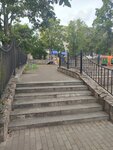 Вход на детскую площадку без пандуса для колясок - классика :(( Покрытие просто максимально не безопасное. При этом лазалки очень хорошие, но тоже на половину уже вышедшие из строя. Очень жаль, что такая классная изначально площадка в таком упадке :(