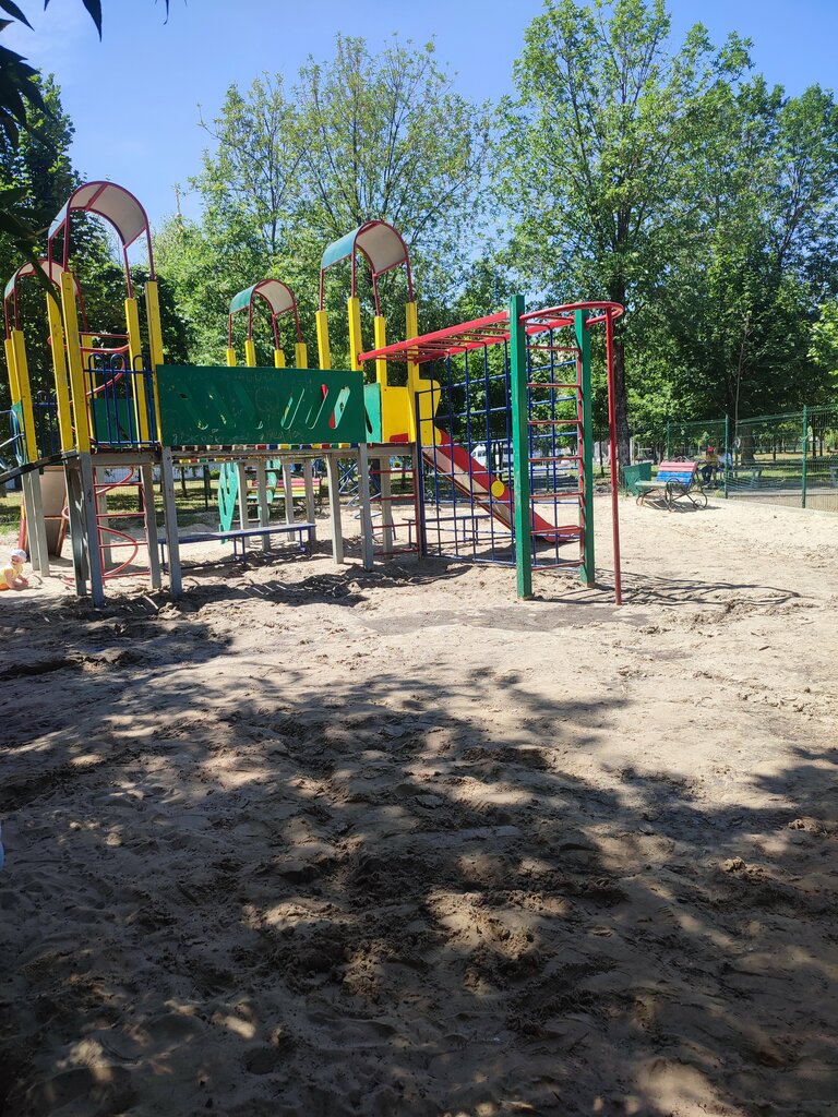 Хорошая песочница , есть тенёк от деревьев . Но сами комплексы уже старые , краска на досках облупилась - можно с лёгкостью получить занозу .