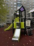 Отличная площадка для детей от 2-3 лет до 10-12. Огорожена, установлены камеры. Часто вокруг выгуливают собак.