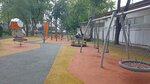 Хорошая площадка с прорезиненным покрытием. Современно оборудована. Минус за то, что не ограждена заборчиком, ведь рядом дорога. Недалеко лавочки для отдыха.