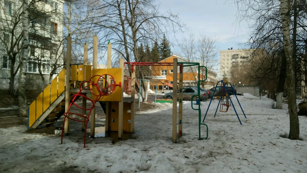 Уже устаревшая площадка,нет спортивных снарядов,нет лавочки,где посидеть и посмотреть за детьми.Зато машины заезжают буквально на площадку со всех сторон