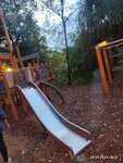 Очень живописное место - лес и пруд, много фонарей, всё что нужно для малышей: горка, качели и паутинки для деток побольше!