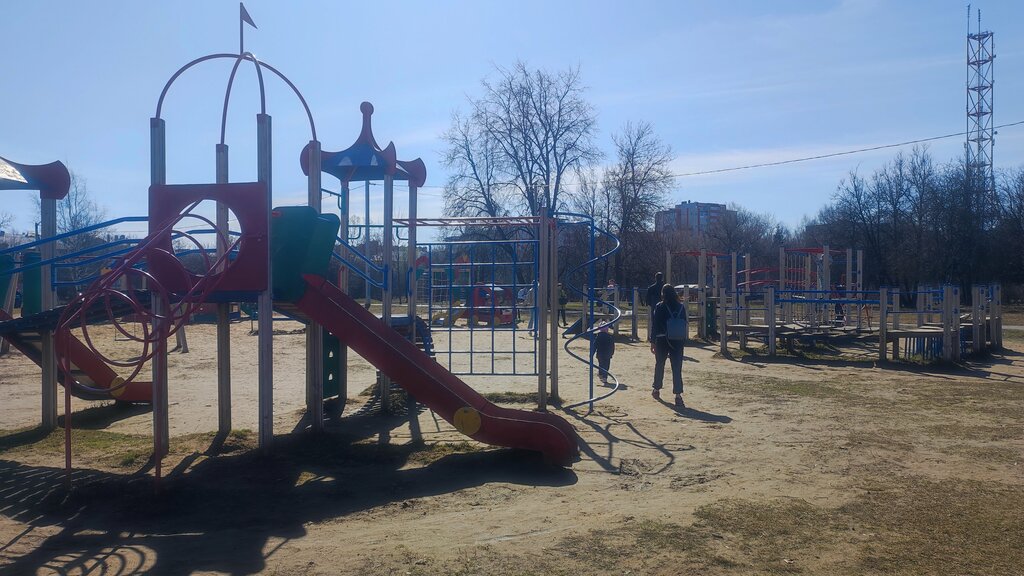 Отличная площадка: горки, качели, песочница, спортивные комплексы. Скамейки есть. Старенькая, частично поломана, но играть приятно. Вечером часто много детей