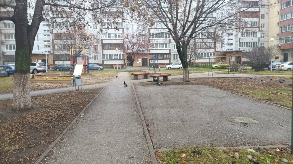 Снимаем в этом доме квартиру, а сама с соседнего дома. Очень хороший двор, есть лавочки. Детям есть где поиграть.