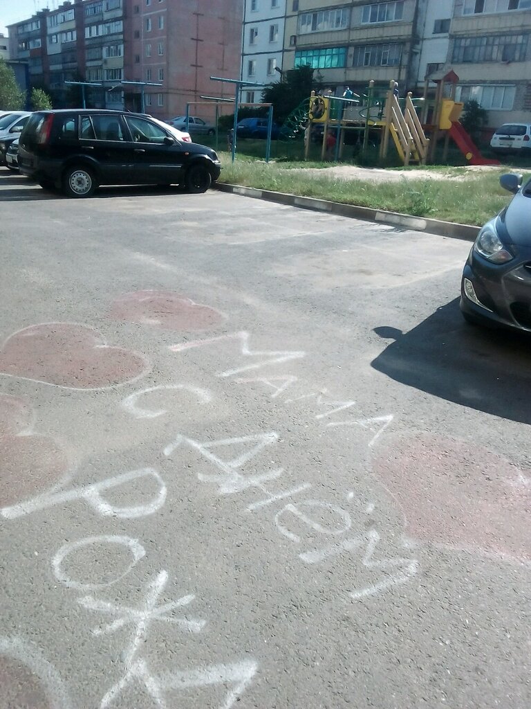 Это самый хороший двор, где все это сделали жители нашего дома. Дерьвье делают тень и детям хорошо гулять. Но место для гулянья детям забрали наши власти и сделали карманы для машин. Детем не где играть футбол. Мяч все время бьёт по машинам и люди с болкон кричат 3 эт маты. А видь было большое поле для футбола.