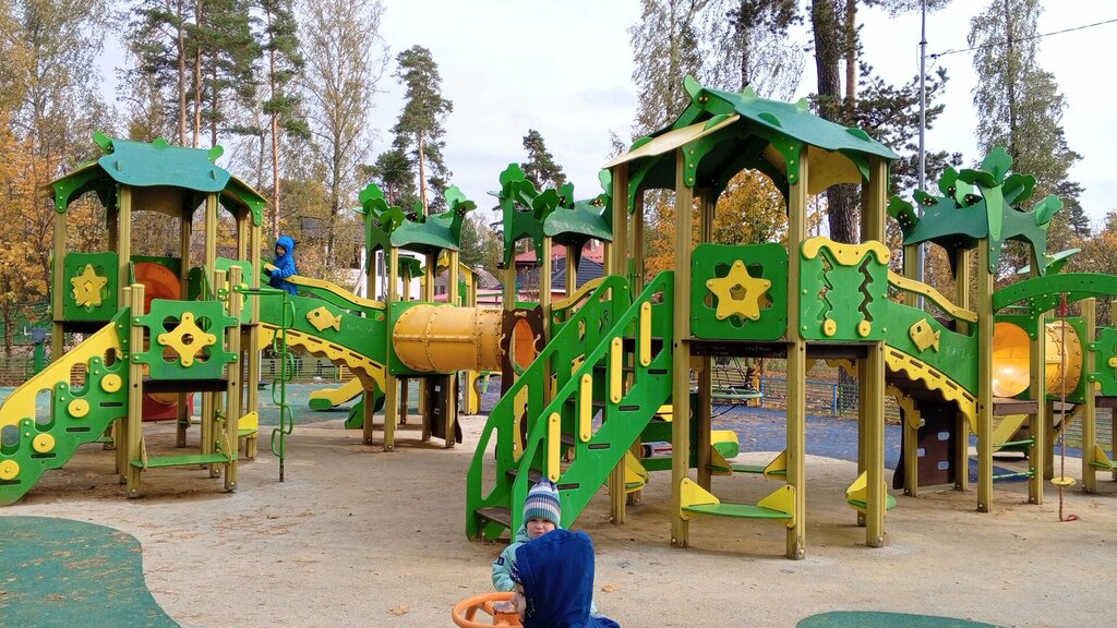Обалденная площадка ,сыну очень интересна ,много всяких детских качель,горок,труб,домиков, песочница и всякие прикольные детские игры. Большая и суперская площадка