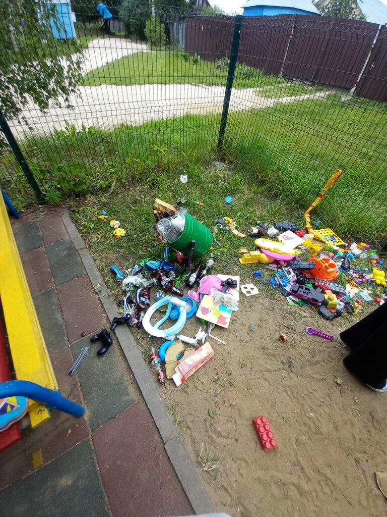 Площадка как площадка, НО убирают её редко. Сегодня вместе с мамами вынесли сами мусор на помойку. Хотелось бы обратиться к тем хрюшкам, которые не в состоянии донести свои пивные бутылки до мусорки и к "щедрой тётеньке", которая принесла кучу хлама из старых игрушек на площадку: убирайте за собой мусор, до контейнера донесите, никому не нужны старые сломанные игрушки и бутылки! Вы здесь живете в конце концов!