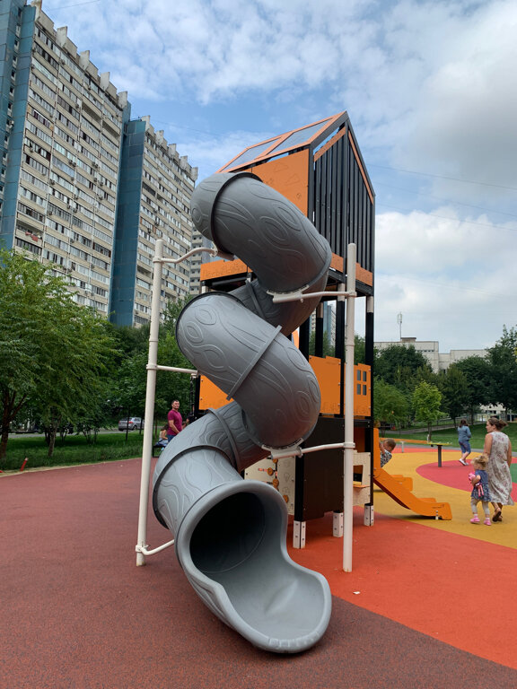 Раньше было намного больше качелей,большая горка со спортивными турниками,баскетбольными кольцами.Сейчас все дети пользуются только горкой,отчего она сломалась сразу после установки.