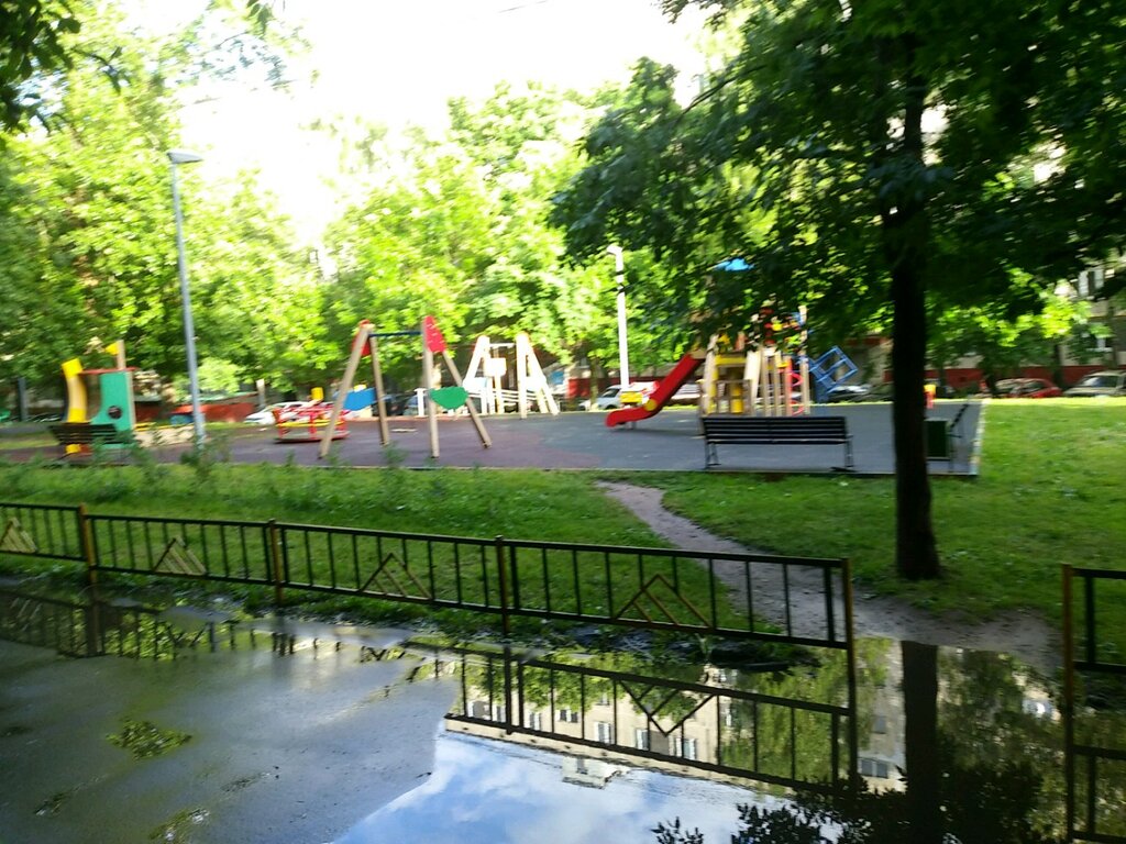 На Медынской 1,все 3 дет площадки из советских времен, и МАФы, и покрытие дырявое, пластмассовые. Калечатся и дети, и родители.