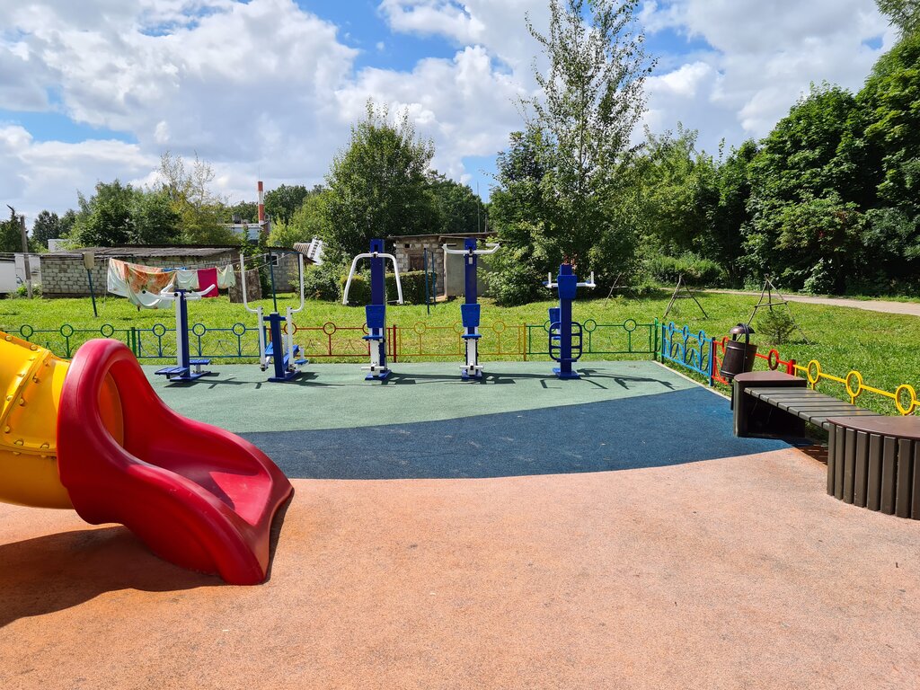 Хорошая площадка, дети в восторге! На ней могут играть как маленькие так и большие дети! Для родителей есть тренажеры