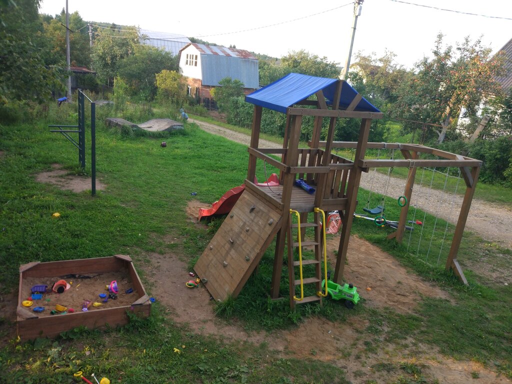 Отличная площадка! Можно хорошо проводить время с детьми и соседями. Дополнительно установлен теннисный стол для родителей и не только. Мусорные контейнеры отделены забором и выполнены в экологичном форм-факторе, закрываются герметичной крышкой. Овраг отделен сплошным забором. Есть видеонаблюдение. Детей много, игрушек много. Также есть спортивные объекты.
