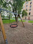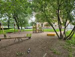 Отличная детская площадка. Немноголюдно, тенек. Песочница полная речка и с удобной крышкой от дождя, которую легко развернуть. Добротные качели.