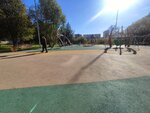 Отличная площадка в стилистике Динопарка: 4 лазелки разной сложности, лазелка со средней горкой, 2 качели-сетки и 2 простые качели, верёвочная карусель (опасная). Песочницы нету. Много скамеек с мусорками. По всей территории искусственное покрытие.