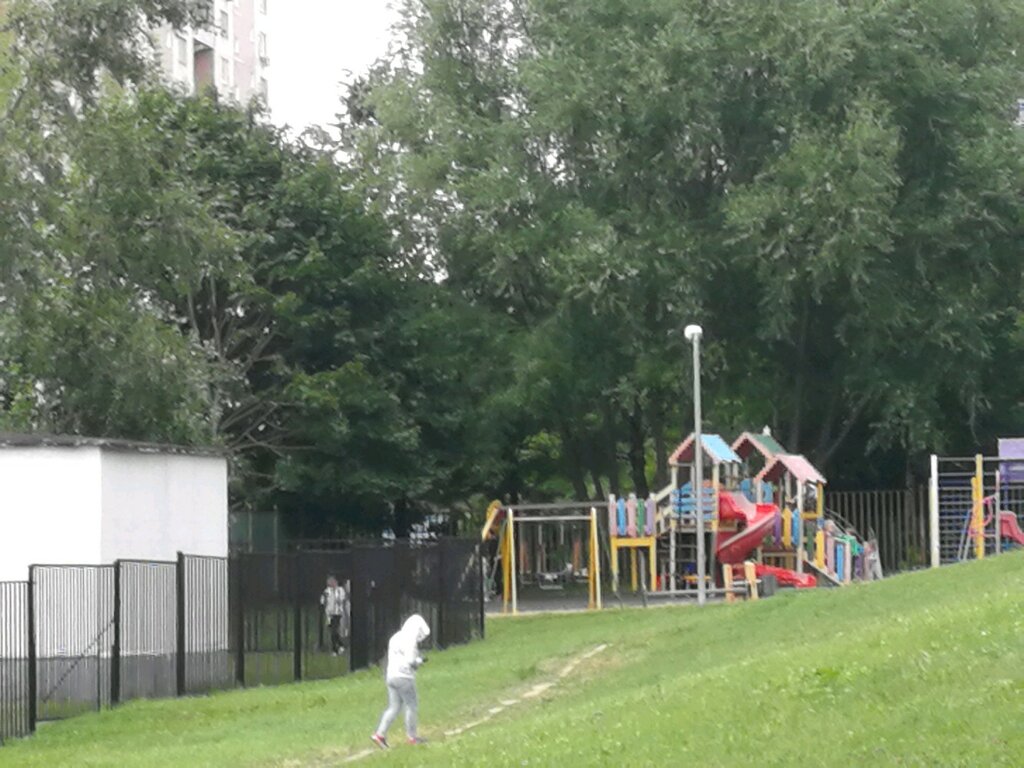маленькая площадка, вечером там сидят местные и распивают спиртные напитки, зимой жители организуют горку своими силами, тк в районе нет организованных мест для прогулок и отдыха с детьми