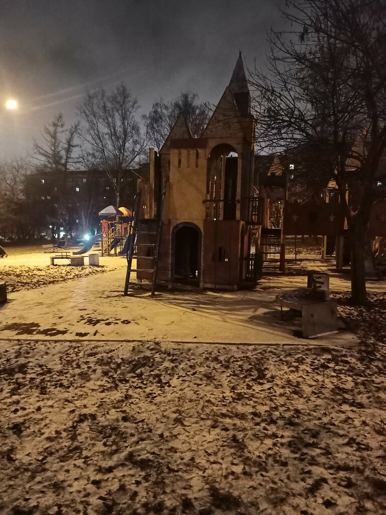 Большая и красивая детская площадка, настоящий город со множеством переходов, горок и лазилок. Удобнее место, хорошее освещение, много пространства для различных игр. Единственное что смущает, что вокруг нее место для выгула собак.