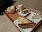Одна из любимых кофеен. Люблю здесь брать вкусные чаи, особенно Ягодный микс и Клюква-Апельсин. Очень понравились блинчики с вишней, с приятной кислинкой, не сильно сладкие. Вкусные сендвичи и блинчики с лососем. Из десертов очень нравятся здесь тарталетки с клубникой и голубикой, да, и в целом, есть неплохой выбор не сильно сладких десертов. Рекомендую