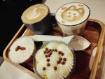 Очень вкусный и милый кофе😺, вкусные десертики)) Спасибо Алине(так на футболке было написано) за быстрое и качественное обслуживание. Даже дали зарядное устройство, спасибо большое! 🥰