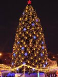 Очень красиво, чисто, там сейчас делают ледяной городок. Летом очень красивый, большой фонтан. Вокруг высокие, современные здания. Много лавочек.