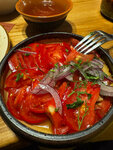 Приехали в обед . Сели спокойно . Чисто на столе было . Девушка официант замечательная. На этом хорошее закончилось : плов Ташкентский я могла спокойно вылить масло из тарелки , сухое пережаренное мясо ; сала ( забыла название ) - курица, шампиньоны, огурцы , соус - было невозможно есть тк пересолен ; долма - разварена и вся разного размера ; шурпа из баранины - никакая не вкуса ни радости . Чай Ташкентский был вкусный все . Туалет - грязно, было везде раковины, унитазы, столешницы и отвратительный запах . Не рекомендую .