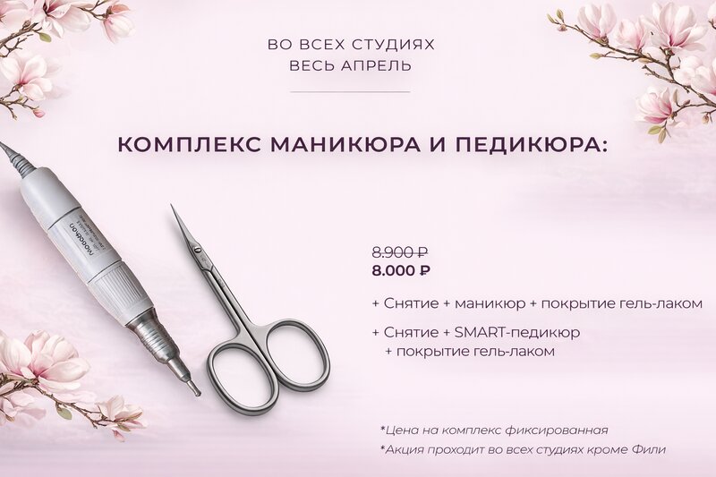 🌿 Апрель — время ухоженного образа В студии действуют специальные предложения на базовые бьюти-услуги 🤍 ⚪️ Комплекс маникюра и педикюра ...