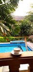 I'll start with the cons: - it was not possible to contact the hotel to book a room. There was no response to messages, emails, booking requests through the website, and so on. Positive: Despite the fact that it was not possible to book a room in advance, we arrived anyway. We were immediately offered a choice of several rooms and bungalows. We chose room 601 (De Luxe), which was a little more expensive than we would have liked. We had to haggle a little, and as a result, the price was slightly reduced, since we rented for a long time and paid in cash.Then the manager ordered us to be taken to an exchange. The room is spacious, with a kitchen and a medium-sized refrigerator (in addition to a small one outside the kitchen), plenty of closets, a large balcony, a dryer, a bathtub and a shower. In general, the room has everything you might need for a long stay. Room cleaning was always excellent. The bungalows and deluxe buildings have a private pool, which was especially nice. There were always free deck chairs and umbrellas. There is a shower and a Jacuzzi. Tables and chairs. The territory of the hotel is not large, but beautiful, lots of blooming greenery. There is a free shuttle service from the hotel to the tuk-tuk road. There is a shop and makashnitsy near the hotel. The sea is literally 5 minutes away, in a straight line across the street, but this is for those who like the sea in Pattaya. The beach is clean and well maintained. In the evening, it's nice to walk along the shore, have dinner with a beautiful view, or just spend time.