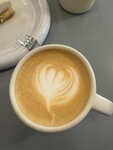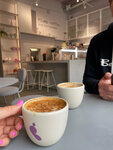 Давно хотела заглянуть в эту кофейню, но никак не бывала рядом. И вот случилось) Очень приятное место, светлое с окнами в пол, маленькое, но уютное. Персонал приветливый и вежливый. На витрине аппетитные вкусняшки. Но брала только флэт, очень достойный. Отдельно поставлю 5💫 за чашки- стильно и нестандартно.