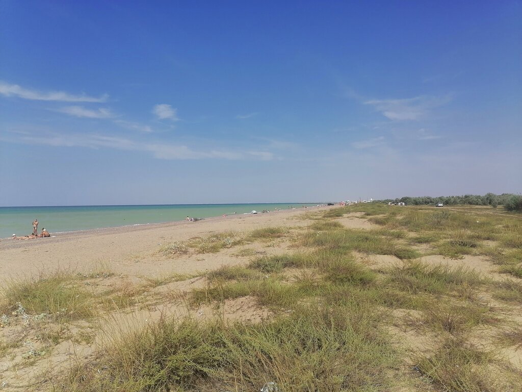 Идеальный 🏝️ пляж. Место где можно разбить лагерь и наслаждаться морем. Рядом можно купить дыни арбузы. Есть магазины. Машину ставим прям на берегу моря .