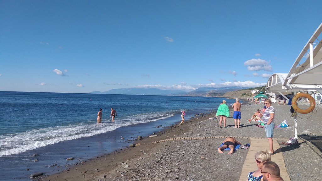 Неплохой пляж с мелкой галькой. Но, после шторма много разрушений. Плохо, что все строения ещё времён СССР. За время украинской независимости ничего сделано не было. Мне кажется, люди становятся более людскими, т.е. курят не прям на пляже, а отходят в сторону, окурки тоже многие собирают в пачку, или пластиковую бутылку и после выкидывают в мусор. Да и сам мусор не разбрасывают по пляжу. Жаль, что не все...