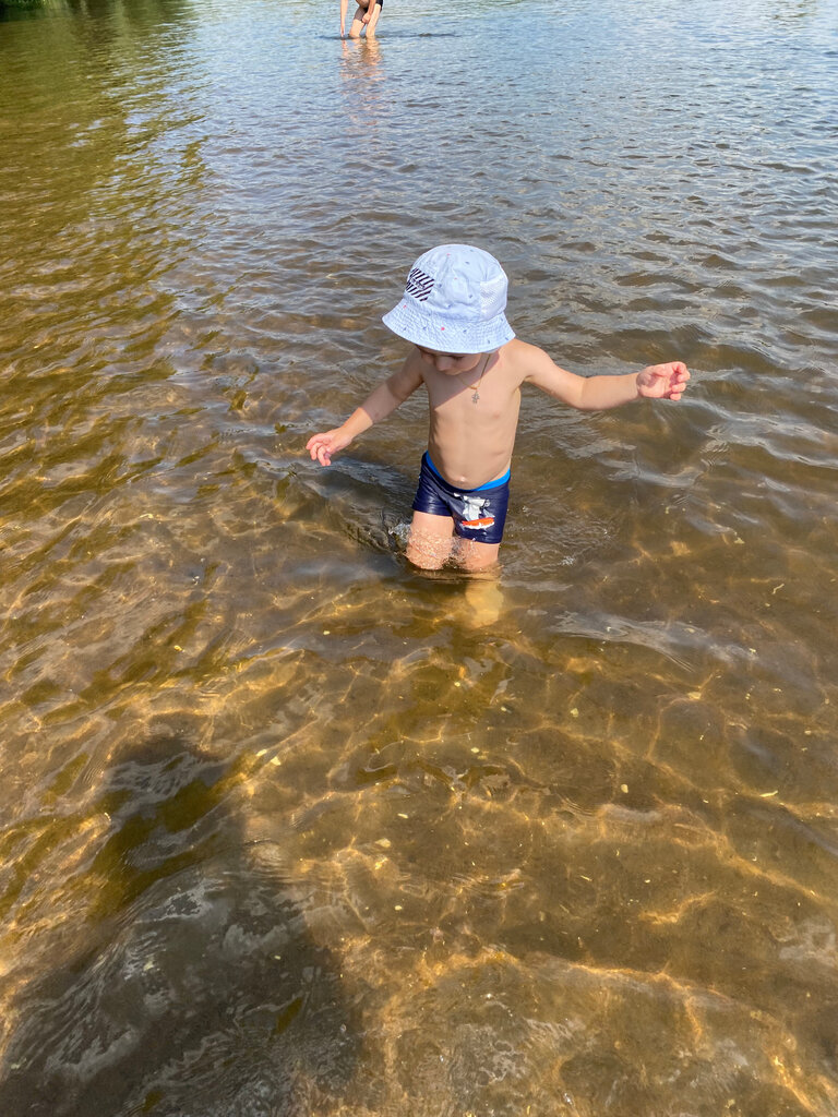 Прекрасное место для купания и отдыха. Дно в реке песчаное, правда течение сильное в этом году,но это даже хорошо. Само место чистое. Спасибо тем отдыхающим, которые не оставляют мусор после себя.