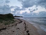 Довольно уютно, были в сентябре, да ещё перед всеми событиями, потому народу не было, тихо, спокойно. Но воды была холодная((( вообще погулять стоит не только по пляжу но по межводному и дальше. Пляж песок, приятный, водорослей есть немного, и то после волнения моря. Глубина маленькая. Есть медузы, периодически. Вода чистая, очень!!