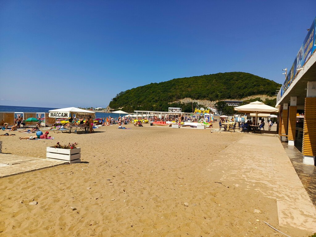 Приезжаю не первый раз, первые впечатления как будто попал в далёкие 90. Центральный пляж Песок с камнями, в воде мелкая галька спуск в воду более комфортный. Если уйти левее есть небольшое место где в воде песок очень приятное место для купания, но вот на самом пляже места мало так как лестница и все спускаются и постоянное движение людей которые идут за мыс, за мысом небольшой кусок пляжа но там лучше не купаться так как вытекает речка с запахом не очень приятным. По поводу вечернего отдыха как и везде есть кафешки аттракционы и другая атрибутика вечернего отдыха. По поводу столовых то это те же кафешки которые днем превращаются в столовые. По цене приемлемо по качеству обслуживания 4 из 5 баллов, но самое главное то что мало места очередь на раздаче тут же столы где едят и тут же люди несут подносы с грязной посудой на мойку. По проживанию полное разнообразие, есть и домики для съемка и номера. Цены скачут очень сильно узнавайте побольше вариантов так как вариант в разы лучше может стоить дешевле, а находится будет по соседству.