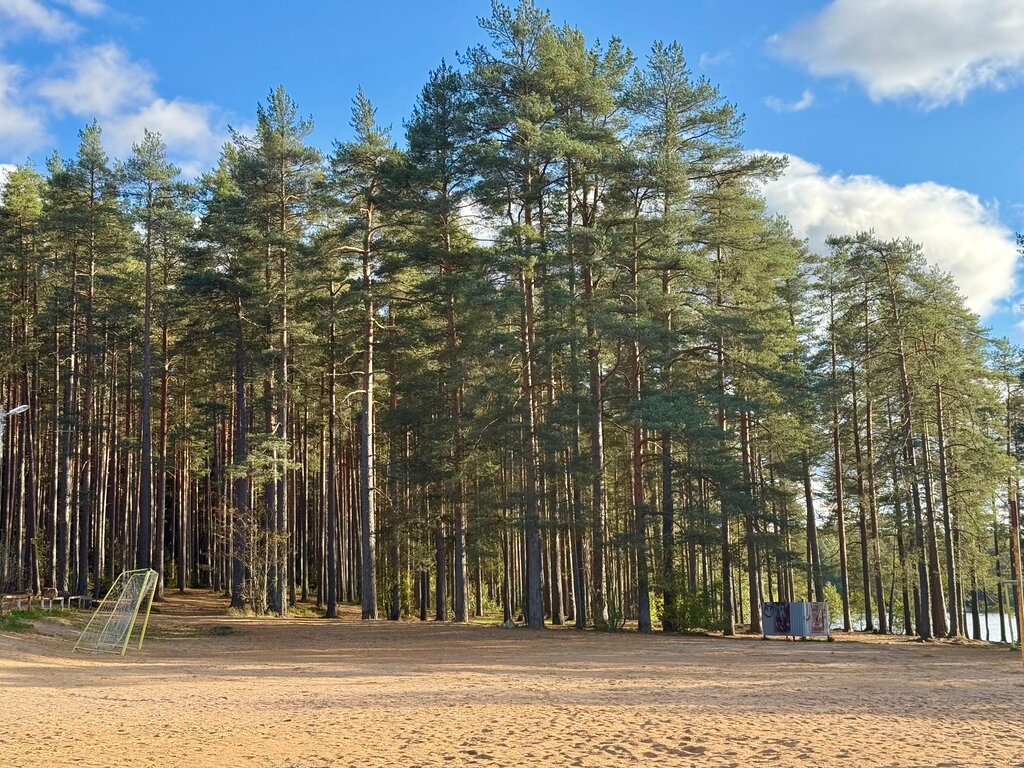 Качество воды - под вопросом (внешний вид, запах, наличие уток). В пешей доступности есть озера с водой, в которой приятнее купаться. Но место популярно у местных, много детей, есть площадки для футбола и волейбола, песочница, качели, 2 кабинки для переодевания. Туалета нет ни на пляже, ни в пешей доступности от него.