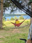 Всём доброго времени. Как тут ранее люди оставляют отзывы, всё есть и плохое и хорошее. Начну пожалуй с того, что не всём понравится. Съезжая с дороги будте готовы ехать по грунтовке с ямами и ухабами, местами пейзаж гигантский борщевик. Дорога до места всегда идёт на спуск. И в случае дождя можно надолго заметь, в общем если погода прогнозируется не очень и ваша машина не внедорожник, там делать нечего. С прицепом тоже было бы рисковано, местами крутые повороты с ямами. Мусор... Да есть поросята, оставляют после себя. Приходится по возможности забрать, что влезает. Помойка с контейнерами есть на выезде на асфальт, только дорого перейти. ОС много было, был укушен, но ничего, пережил😁😁😁комаров не было совсем. Много разных птиц, аистов, цапель, уток, сапсанов наверное ( хищных) видели. Рыба есть, наловили пожарили - съели👍 Вода чистая, прозрачная, купались. Лагерь ставили на кромке леса, до берега метров 100. Люди разбивали лагеря возле воды, но днём наверное это жесть, жара. Место оставило только положительные эмоции. На последок, узнали прогноз на утро обещали в 9.00 дождь, проснулись в 7.00 иу видели тучи. Собрались за 40 минут, выехали и успели точно прям по выезду на асфальт, начался ливень, да такой что пролил несколько часов, с грозой и громом. Представляю как нам всё повезло. Прибыли там 4 дня, только положительные эмоции. В общих чертах выбирать вам, да и каждому решать где и как отдыхать. Всём удачных поездок и не забывайте забирать мусор, это не так трудно.