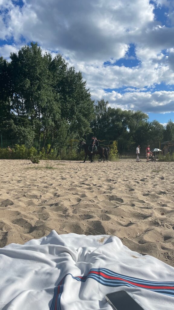 Пляж как пляж так себе. Добираться не удобно. Само место в прямом смысле этого слова вовсе и не пляж а скорее полянки в лесу неподалеку от реки. Сам берег лесистый. Из благ цивилизации подиумы на которых удобно загарать тем кто не хочет пачкать в песке плед, беседка и всего 1 турник ну и площадки для пляжных игр. Самую козырную часть заняли гомосексуалисты- у них же и самые веселые тусовки. Для нормалтных людей место то же хватает. Периодически на пляже происходят пьянки и оргии, потом нудисты жалуются что их не понимают и запрещают. В кустах прячутся странные люди, которые подглядыаают, как буд то им запрещают смотреть в открытую. Река достаточно широкая и более менее чистая. Она судоходная а так что далеко от берега лучше не отплывать