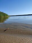 Пляж замечательный, парковочка маленькая, но есть варианты расположиться. Можно и с палаткой и просто. Вода норм, до глубины достаточно быстро дойти, 10 шагов. А вот песочек уже отдает угольком(((Послание отдыхающим: не закапывать уголь в песок,а то вместо золотистого, он уже весь черный. И конечно есть печаль-печальная - это самовольный туалет прямо вдоль береговой линии и куча влажных салфеток, которые не разлагаются. Но в общем и целом красивая природа, шикарный лес.