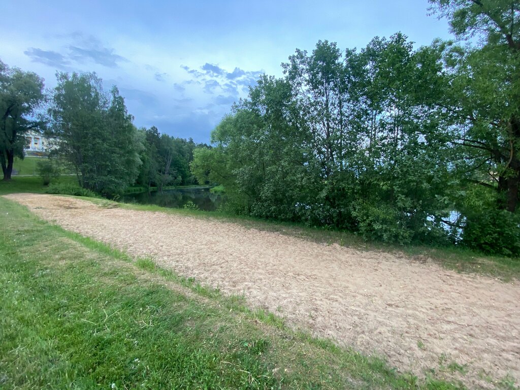 Пляж ни о чем( полоска песка и поле , для волейбола. Есть маленький навес, от солнца, остался наверное со временем СССР. Купаться нельзя , маленькая черно-серая речка, но загорать ( кому норм) наверное можно