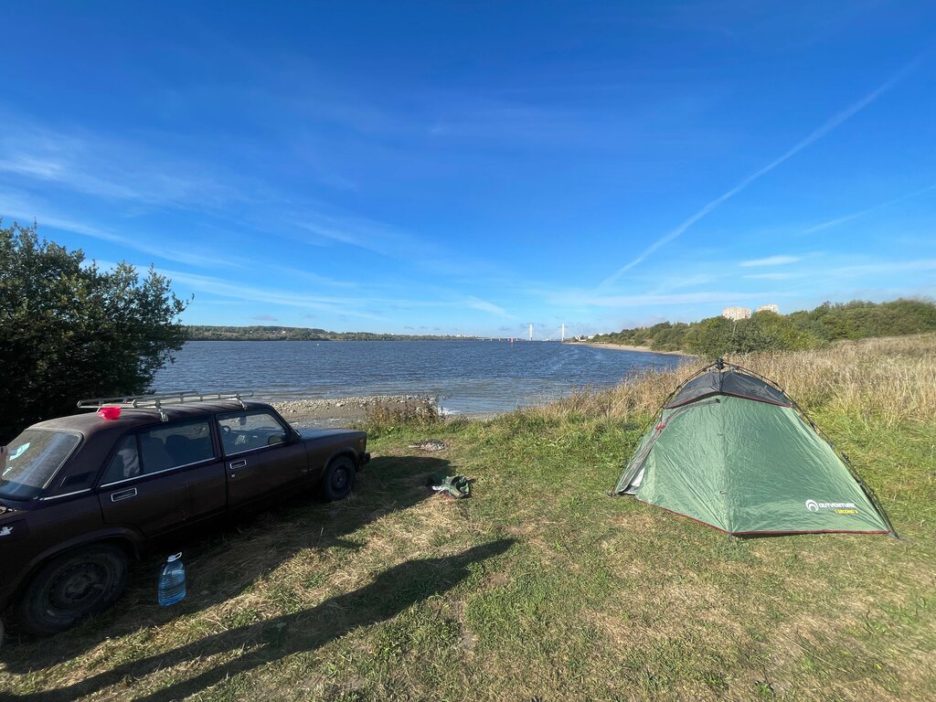 Были проездом - ставили палатку, вечерний вид на подсвеченный Архангельский мост отличный. По реке ходят разные судна. Берег так себе - крупная галька, на полянке норм. Самое главное забирать с собой мусор!