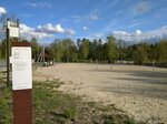 На озере три пляжа. Этот, пожалуй, самый благоустроенный: тут есть песчаная волейбольная площадка с небольшой трибуной, лаунж-зона с шезлонгами, светлый песок...