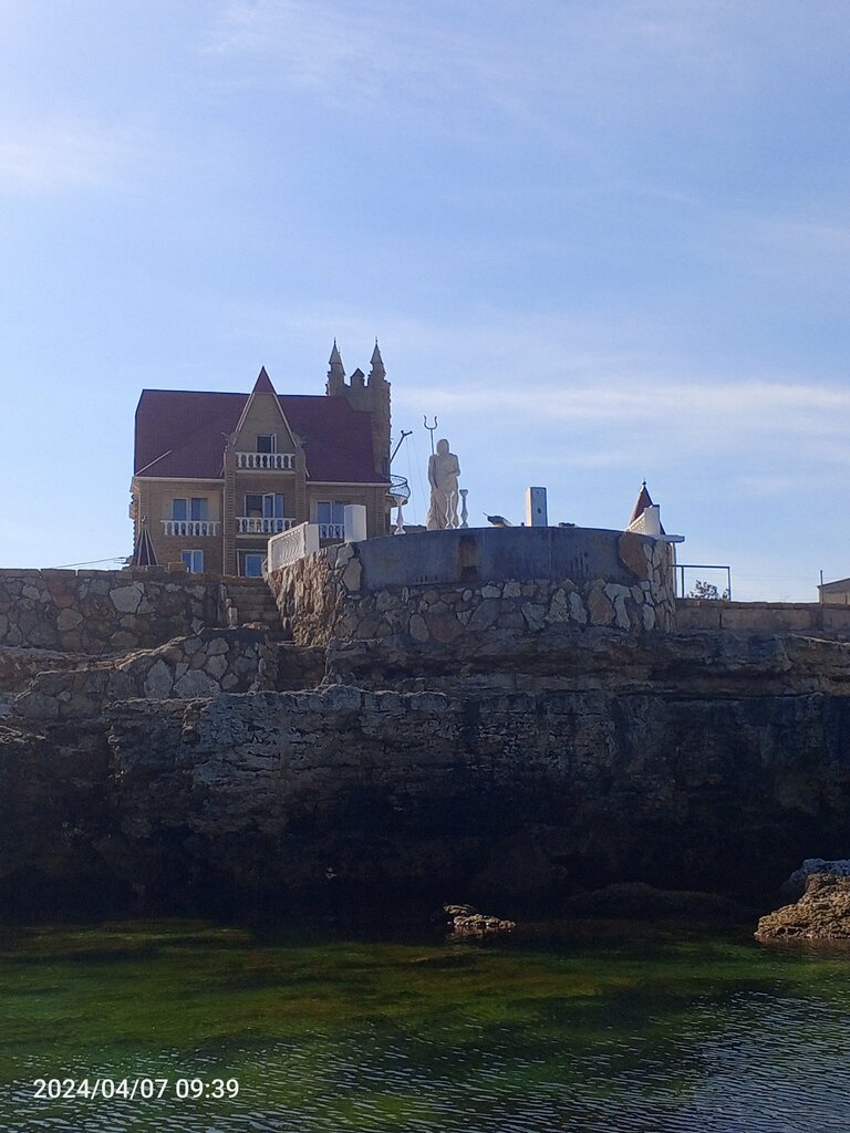 Пляж отличный, красивое дно, много рыбы и крабов. Заход с лестницы удобный. Если смотреть с моря на лево, стоит там красивый дом в виде замка, песочного цвета, так вот на стенах дома заделана кирпичом, свастика. А главное хозяин этого не стесняется, пока!