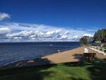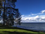 The beach is located on the territory of the sanatorium "Sosny", it is small, but very comfortable. It is equipped with sun beds with mattresses, according to the guest's card, you can take a beach towel, changing rooms with a shower, and brushes for cleaning your feet from sand. The cleanliness of the beach is always monitored. There is a rental point on the beach where you can book a boat ride, catamaran, jet ski, etc. there is a long pontoon with stairs, buoys. The water in the beach area is clean and shallow. A cafe is open on the embankment by the beach from 11 to 23, tables are set up, and a beautiful photo zone with a view of the lake is located nearby. The sanatorium regularly organizes concerts on the embankment.