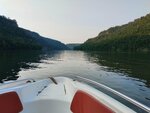 Это центральное место отдыха в поселке Нугуш, не считая домов отдыха и баз разбросанных дальше в лесу. Народ тусуется в воде и на берегу с размахом как на пляже в Анапе и даже круче. Вода в начале июня была прозрачная и теплая +24. На пляже много быстромоторных катеров (аренда обычно на 1 час,) которые промчат вас по Нугушскому водохранилищу до слияния рек Нугуш и .... Очень красивые виды на скалы, покрытые лесом - это начальные отроги Уральских гор. Примечательные места - скалы Вождь (с профилем Ленина, его сделали местные художники в 70-е но после строительства плотины) и совершенно иконическая скала Медвежонок. Катеры вас могут покатать на банане. Я запросил водные лыжи, которые здесь никто не берет. После нескольких недоверчивых вопросов: "А вы катались? Сможете встать? Даём 3 попытки.." - я вышел на одного отличного водителя катера, у которого они были (и пара лыж и монолыжа). Нас с ветерком отлично скатали вверх по озеру и впадающим в него рекам, дал переодеться в гидрокостюм (мой), и потом укатал меня на водных лыжах (3 больших круга мин 15), спасжилет дал.