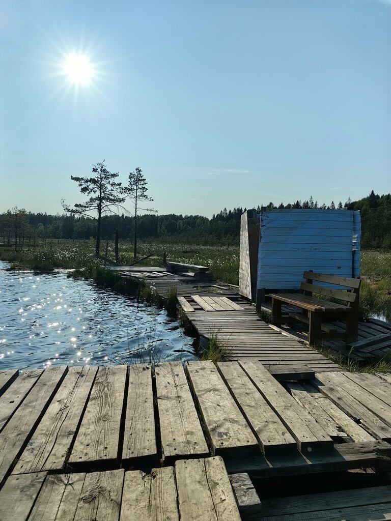 Торфяное озеро Витриярви. Плюсы. Чистое, не заросшее, никакой живности, поэтому не для рыбалки. Есть лестница для спуска в воду, лавочки, крючки для одежды, кабина для переодевания. Через болото выложен путь из крепких досок (болото только в конце пути, несколько метров). По дороге много грибов, даже белых, и много черники. Минусы. Идти по лесу больше 40 минут, но везде есть синие стрелочки и дорога одна, прямая, заблудиться невозможно, если не сходить с пути. Можно на машине или велосипеде, но качество дороги так себе, много луж и камней. Озеро глубокое, дно есть только справа от пристани и оно илистое. Не подойдёт людям, кто не умеет плавать. Переплыть озеро можно за 10 минут, на другой стороне тоже пристань, но лестница там утопает в иле, забираться там неприятно и неудобно. Никакой инфраструктуры само собой нет: ни магазина, ни туалета, ни спасателей. Но магазин есть в начале пути, в ДНП Солнечное, от которого и надо идти на озеро.