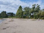 Жёлтый песок, хороший заход в воду. Можно проехать чуть дальше и будет дикий пляж. Вода чистая. Рядом потрясающий вид на поле.